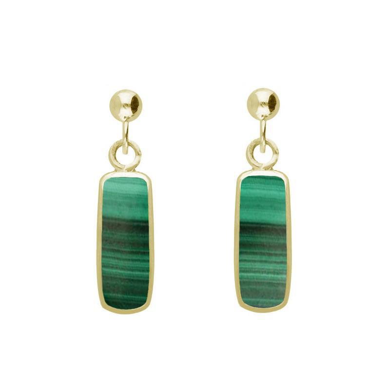 9ct Yellow Gold Malachite Oblong Drop Earrings