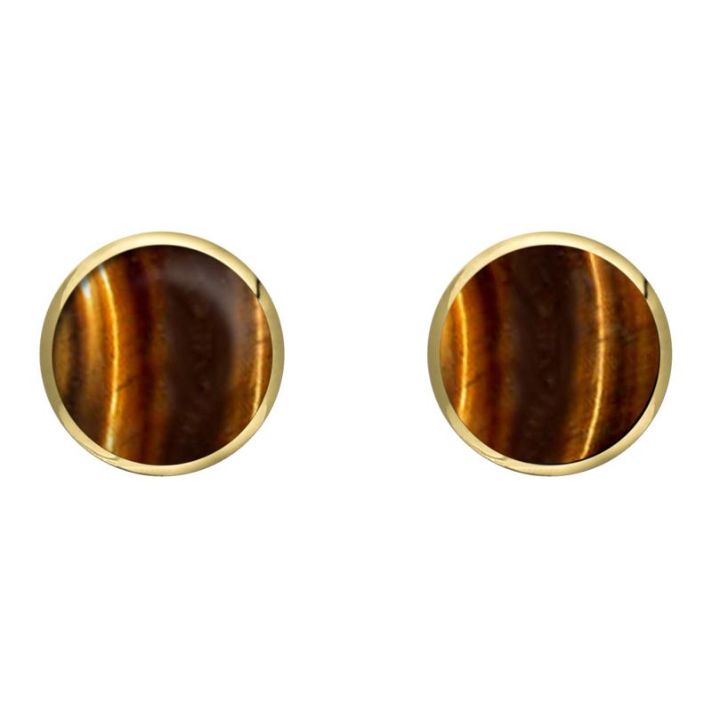 9ct Yellow Gold Tigers Eye 8mm Classic Large Round Stud Earrings, E004.