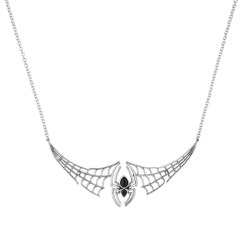 Sterling Silver Whitby Jet Spider Extended Web Necklace