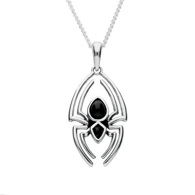 Sterling Silver Whitby Jet Spider Necklace, P2818.