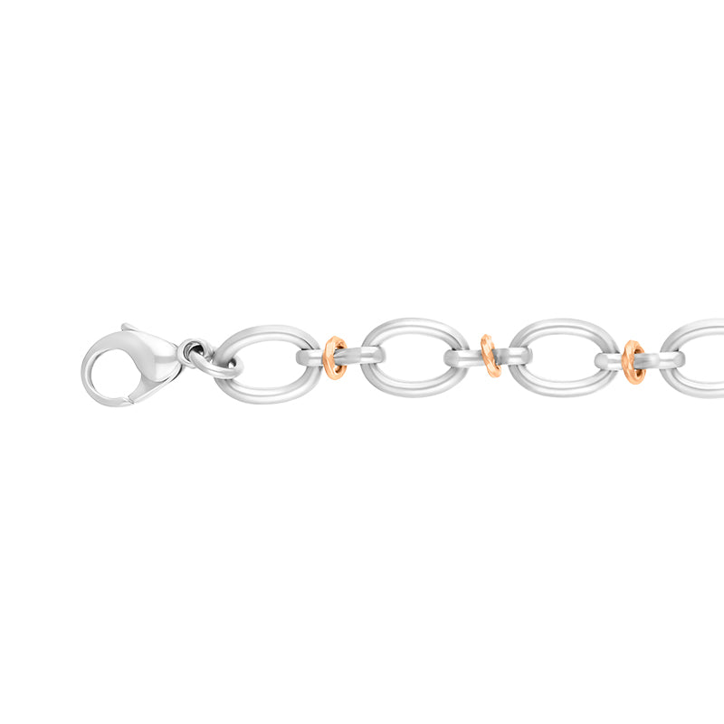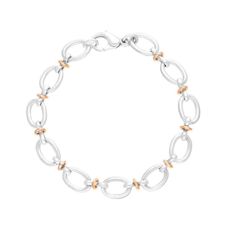 Sterling Silver 9ct Rose Gold Oval Link Handmade Bracelet C058BR