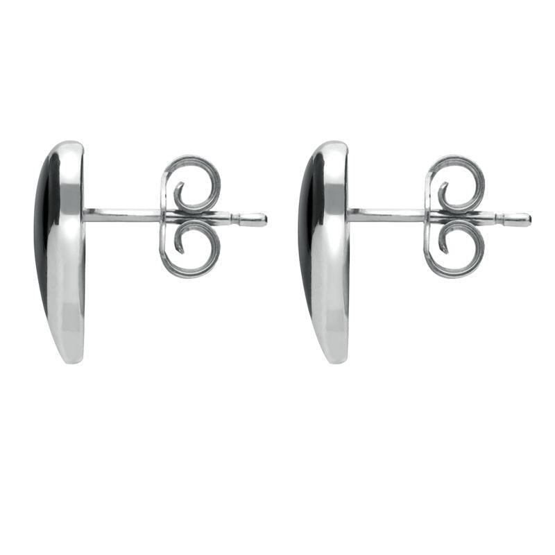 Sterling Silver Whitby Jet Pink Mother of Pearl Split Heart Stud Earrings, E364.