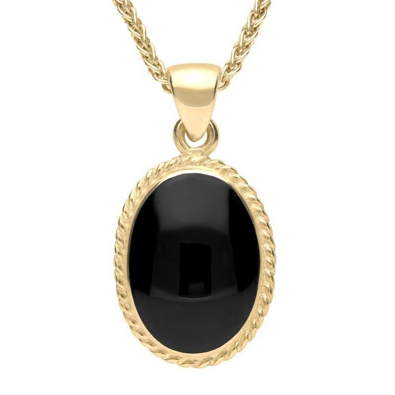18ct Yellow Gold Whitby Jet Heritage Rope Edge Medium Oval Pendant, P004.