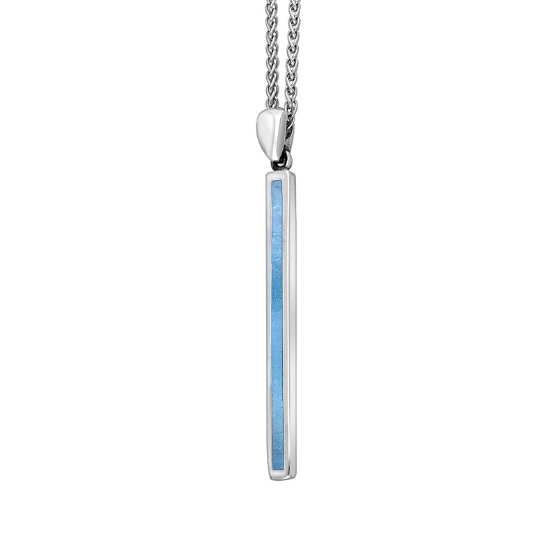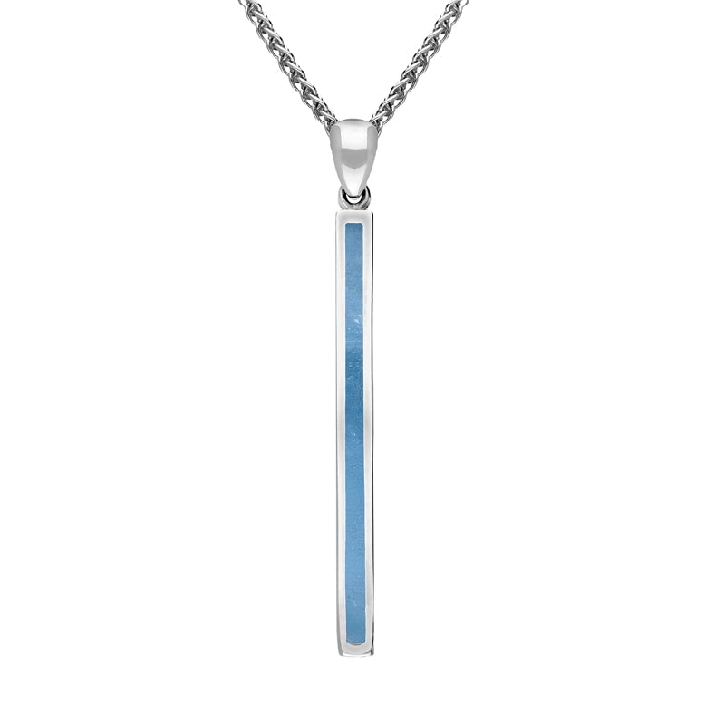 Sterling Silver Aquamarine Long Slim Oblong Necklace. P1472.
