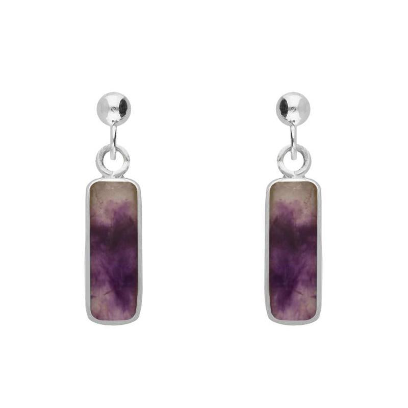 Sterling Silver Blue John Oblong Drop Earrings. E226.