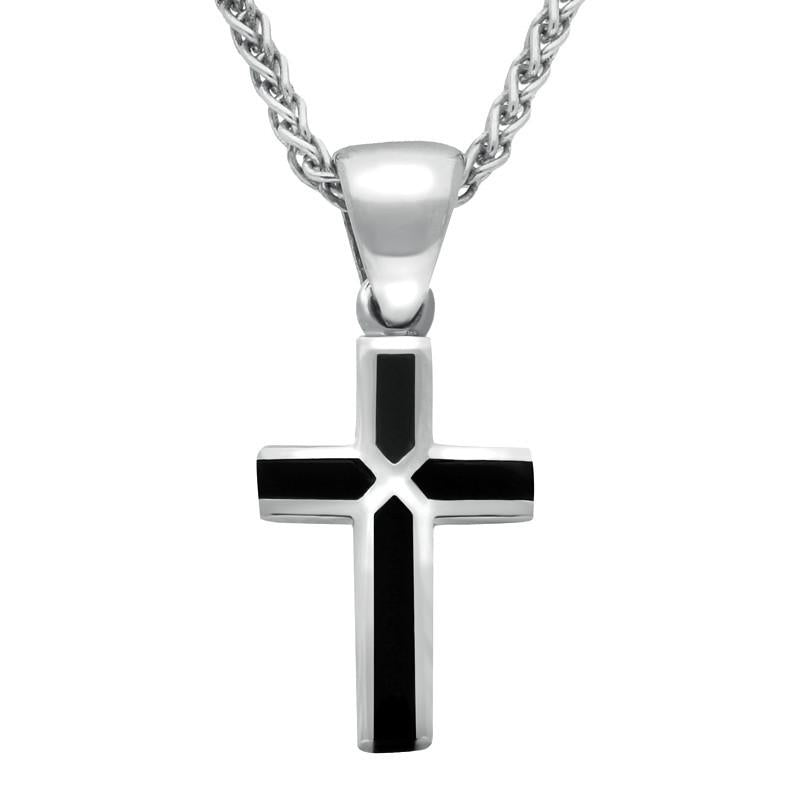 Sterling Silver Whitby Jet Cross Necklace, P1946.