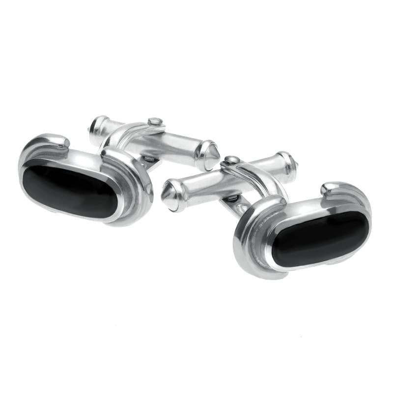Sterling Silver Whitby Jet Dodgem Cufflinks
