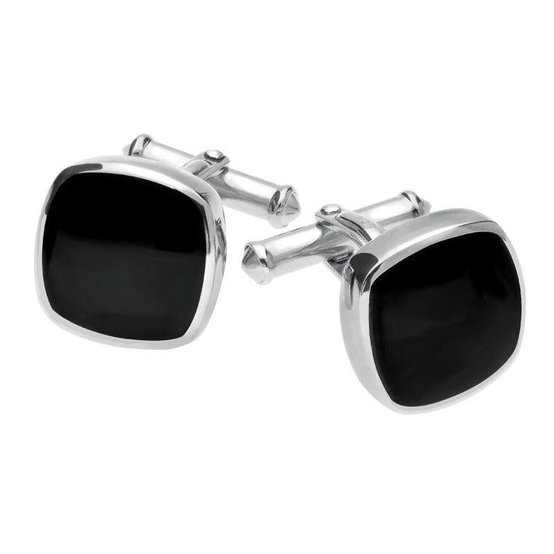 Sterling Silver Whitby Jet Square Cushion Cufflinks
