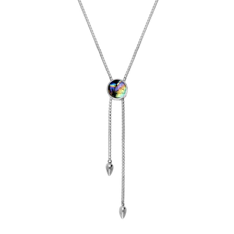 Sterling Silver Spectrolite Lineaire Round Stone Adjustable Necklace. N1136.