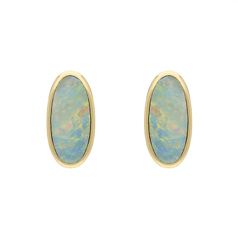9ct Yellow Gold Opal Small Long Oval Stud Earrings, E288.