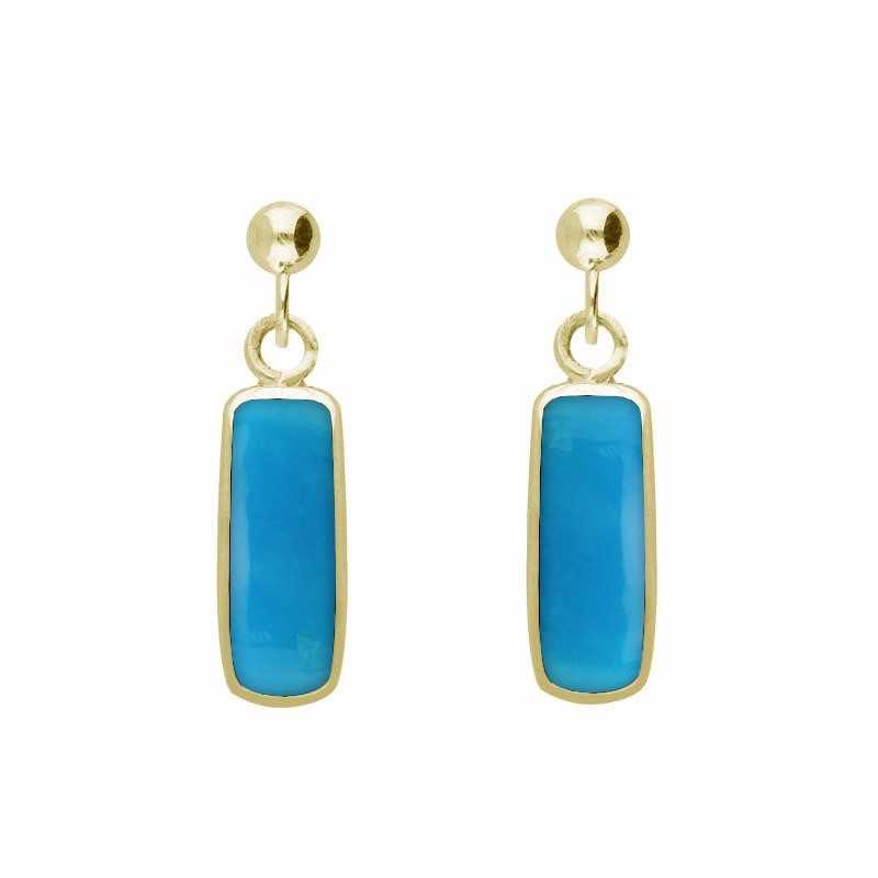 9ct Yellow Gold Turquoise Oblong Drop Earrings, E226.