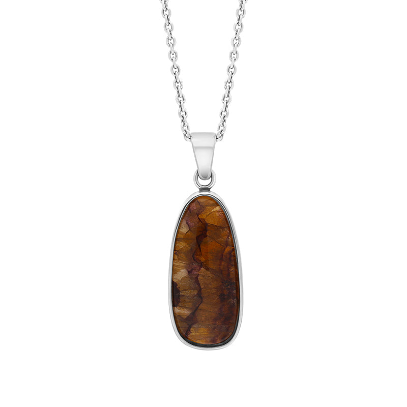 This charming necklace features the finest Blue John and Mother of Pearl. The striking Blue John create a stunning contrast between the and 9ct Sterling Silver and hangs delicately from an 18 inch 9ct Sterling Silver chain making the perfect necklace for someone looking for a beautifully unique piece.