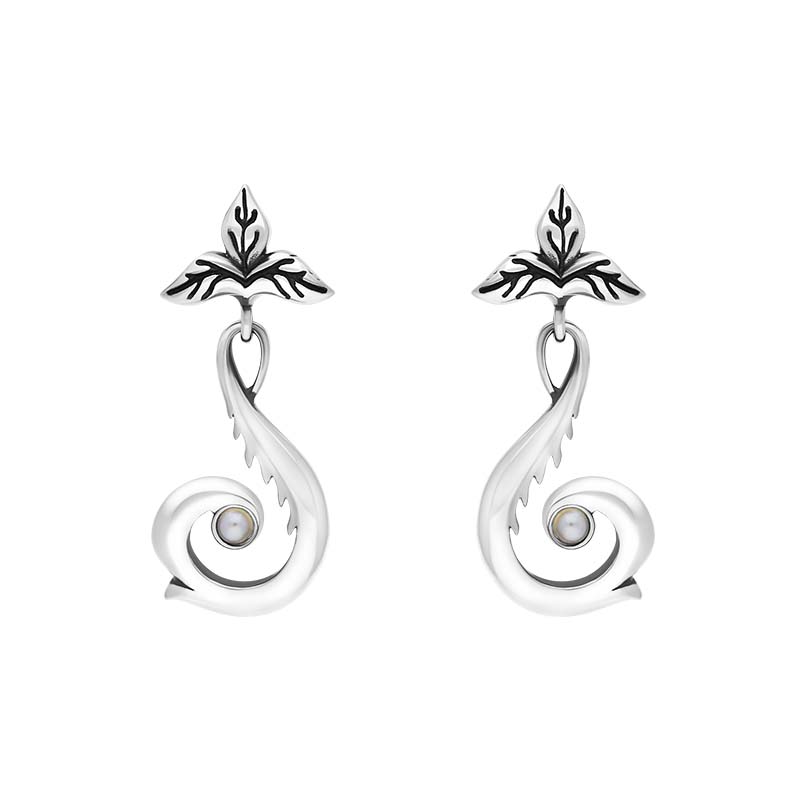Sterling Silver Freshwater Pearl Scrollwork Drop Earrings