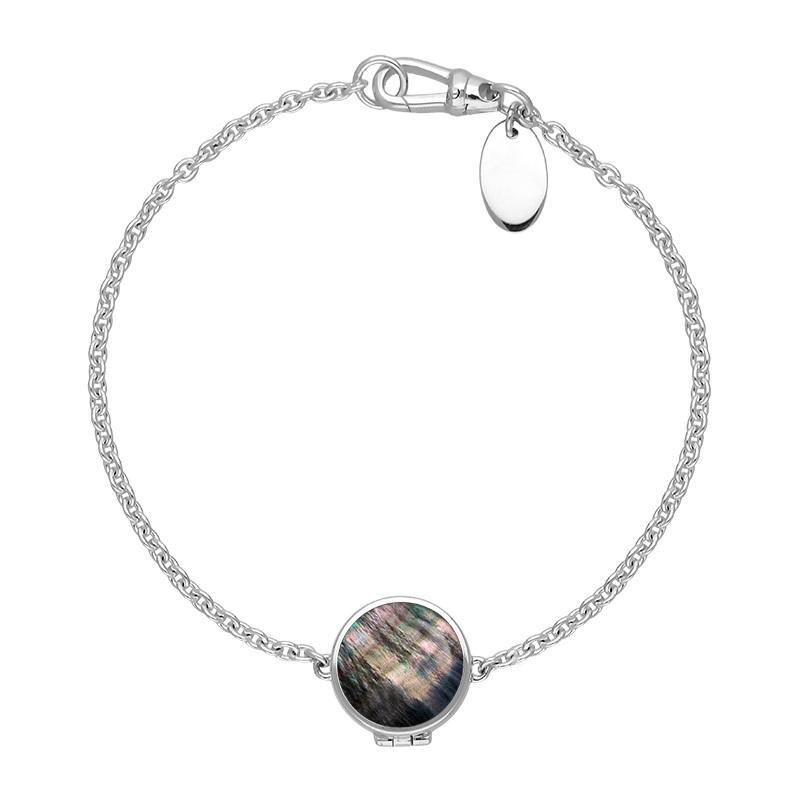 Sterling Silver Dark Mother of Pearl Round Locket Chain Bracelet