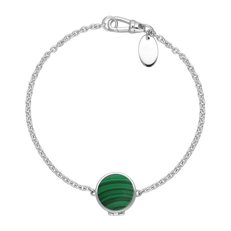 Sterling Silver Malachite Round Locket Chain Bracelet