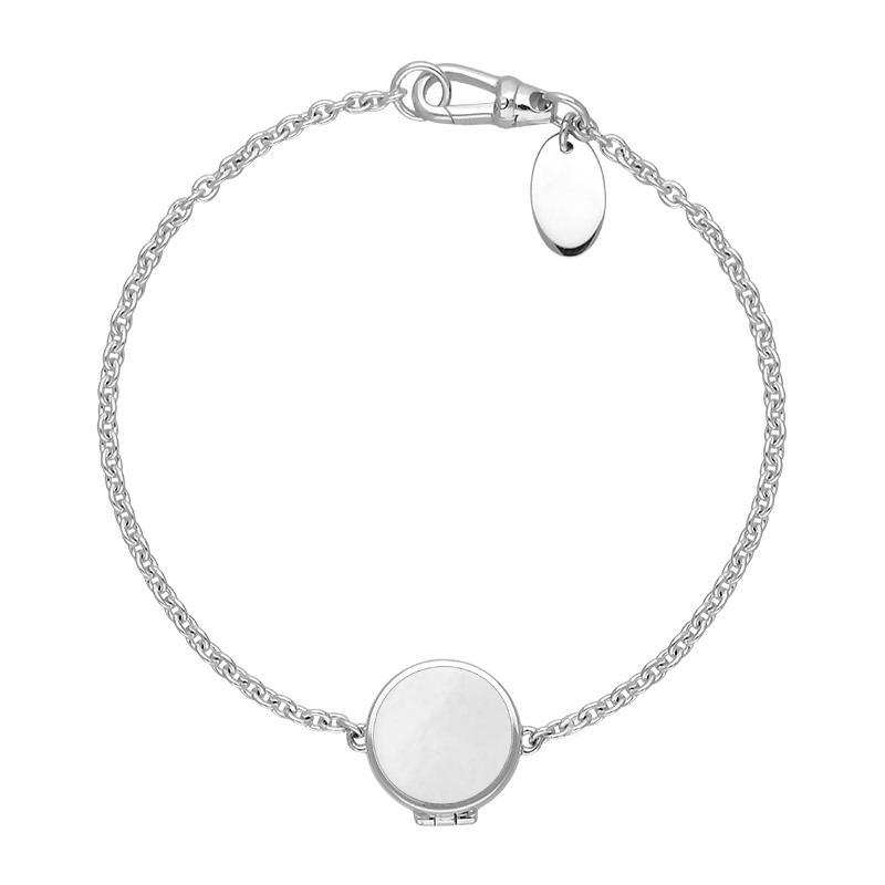 • Sterling Silver Mother of Pearl Round Locket Chain Bracelet - B1248 (ESN-004)