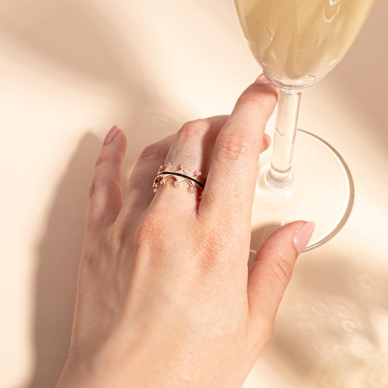 9ct Rose Gold Whitby Jet Diamond Tiara Double Band Ring