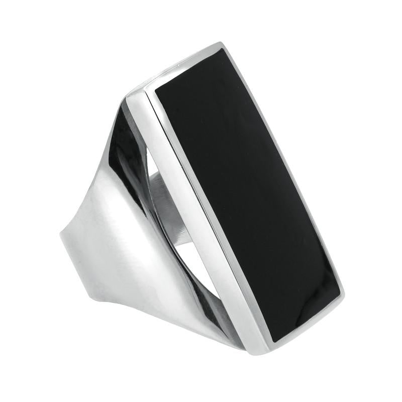 Sterling Silver Whitby Jet Large Oblong Ring. R064.