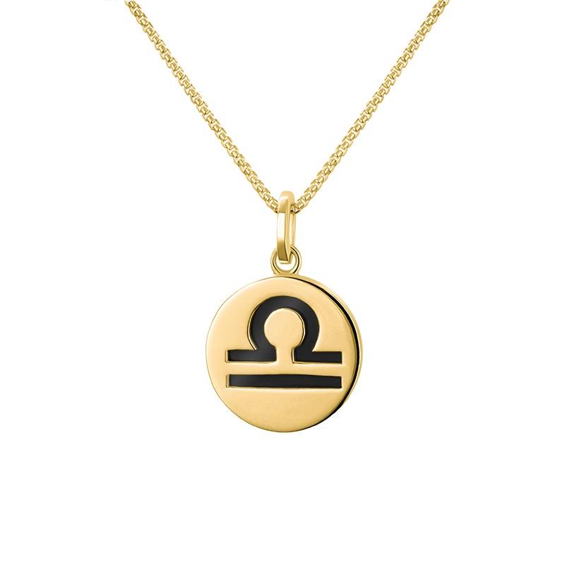 9ct Yellow Gold Whitby Jet Zodiac Libra Round Necklace, P3606.