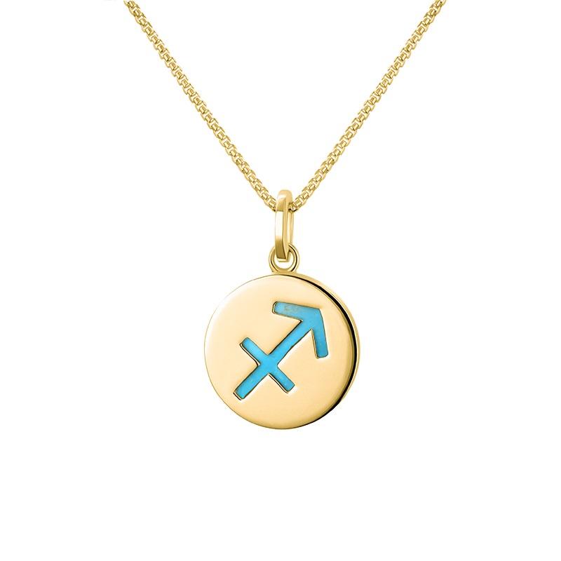 9ct Yellow Gold Turquoise Zodiac Sagittarius Round Necklace, P3602.