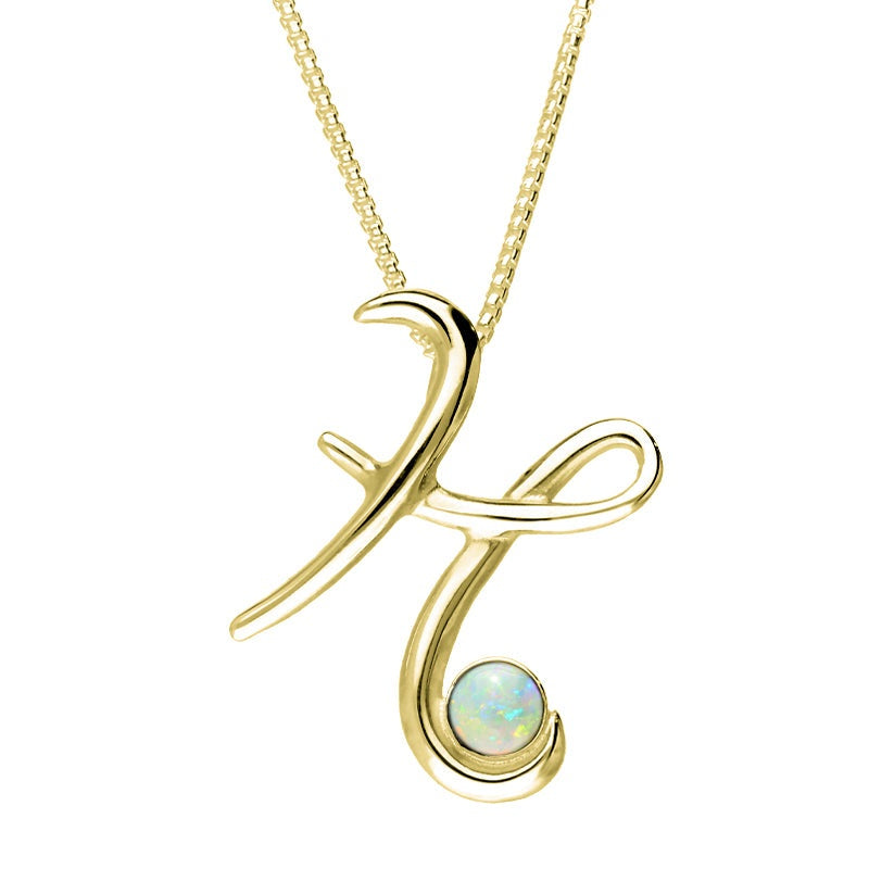 18ct Yellow Gold Opal Love Letters Initial H Necklace, P3455.