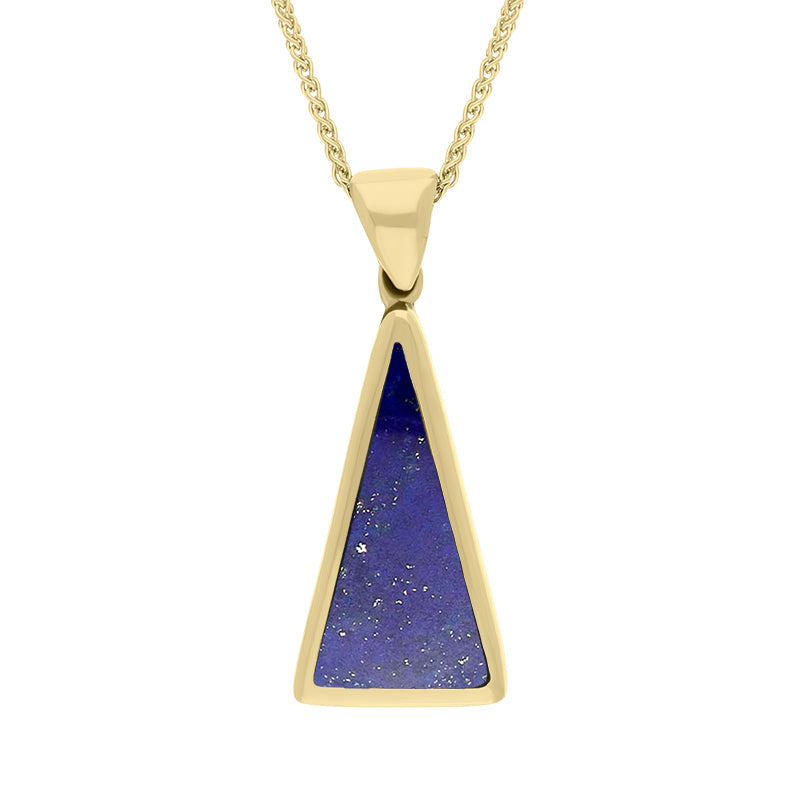 9ct Yellow Gold Whitby Jet Lapis Lazuli Small Double Sided Triangular Fob Necklace, P834.
