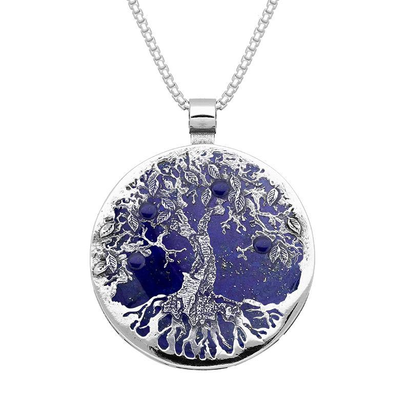 Sterling Silver Lapis Lazuli Large Round Tree Of Life Necklace, P3353.