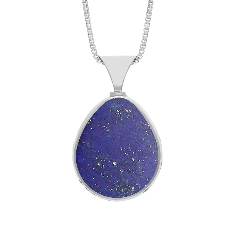 Sterling Silver Whitby Jet Lapis Lazuli Hallmark Double Sided Pear-shaped Necklace, P148_FH