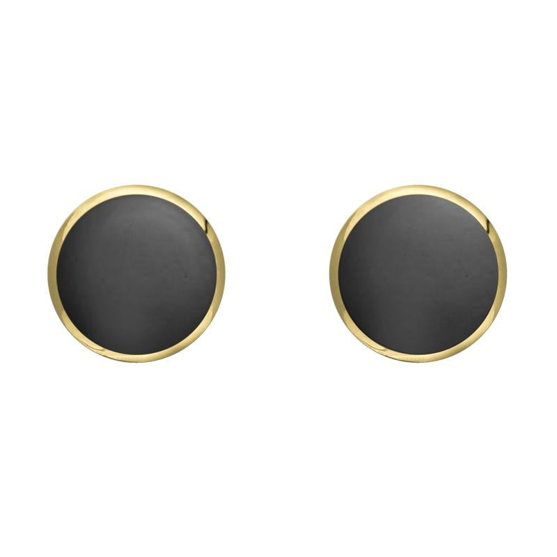 9ct Yellow Gold Hematite 6mm Classic Medium Round Stud Earrings, E003.