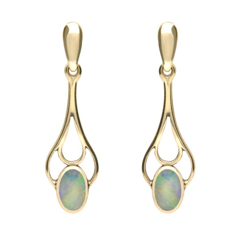 9ct Yellow Gold Opal Spoon Drop Earrings, E138.