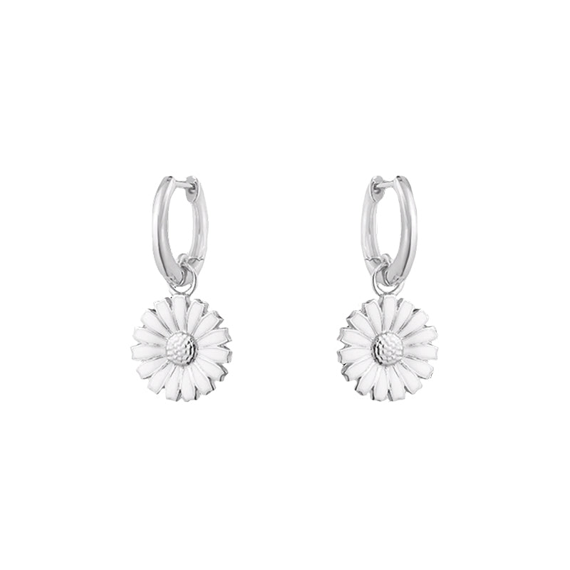 Georg Jensen Daisy Sterling Silver White Enamel Hoop Earrings 20001541