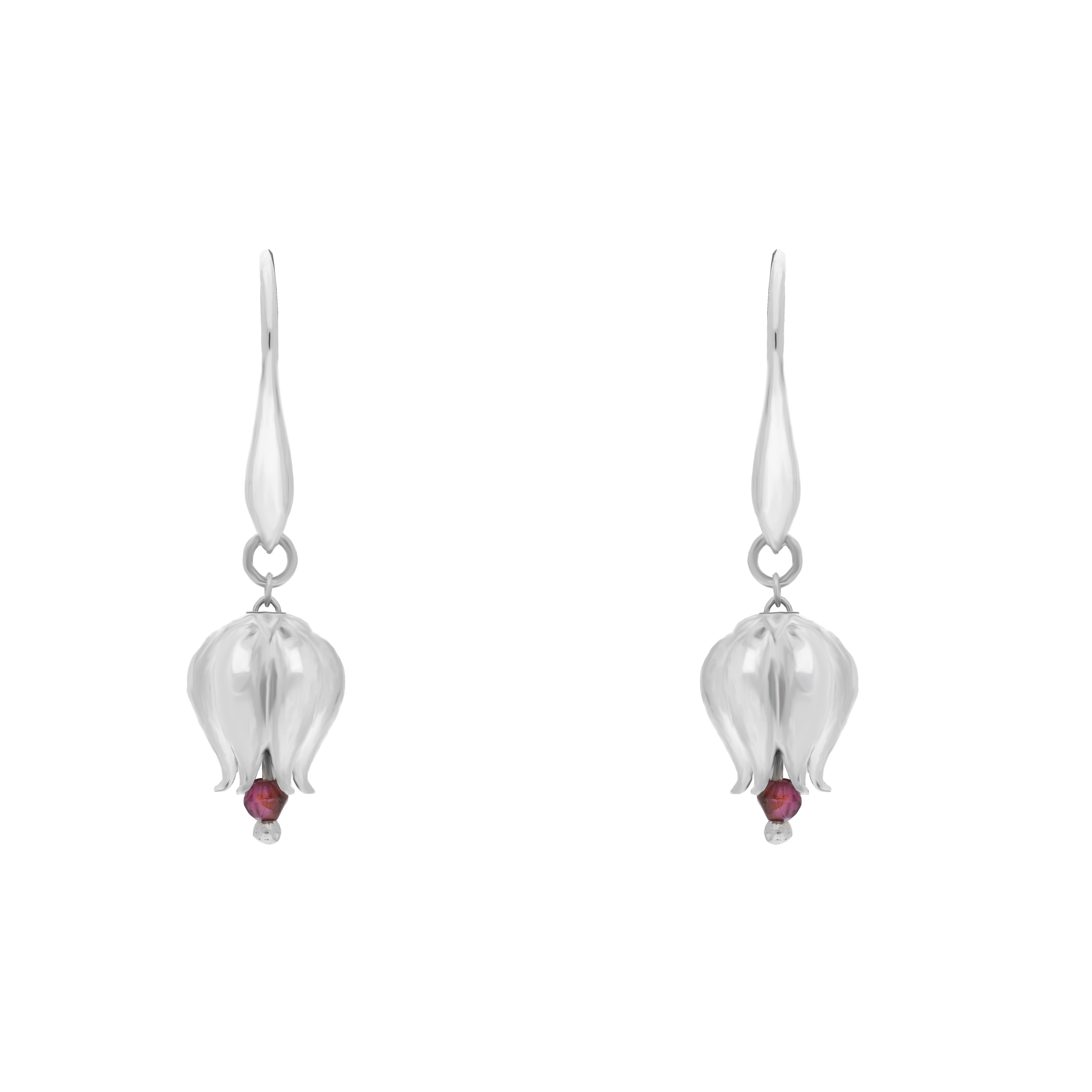 Sterling Silver Garnet Bead 3D Tulip With Bead Drop Hook Earrings