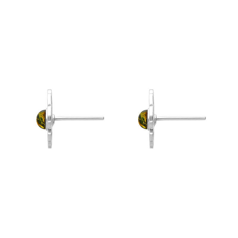 Sterling Silver Amber Flower Stud Earrings E2422.