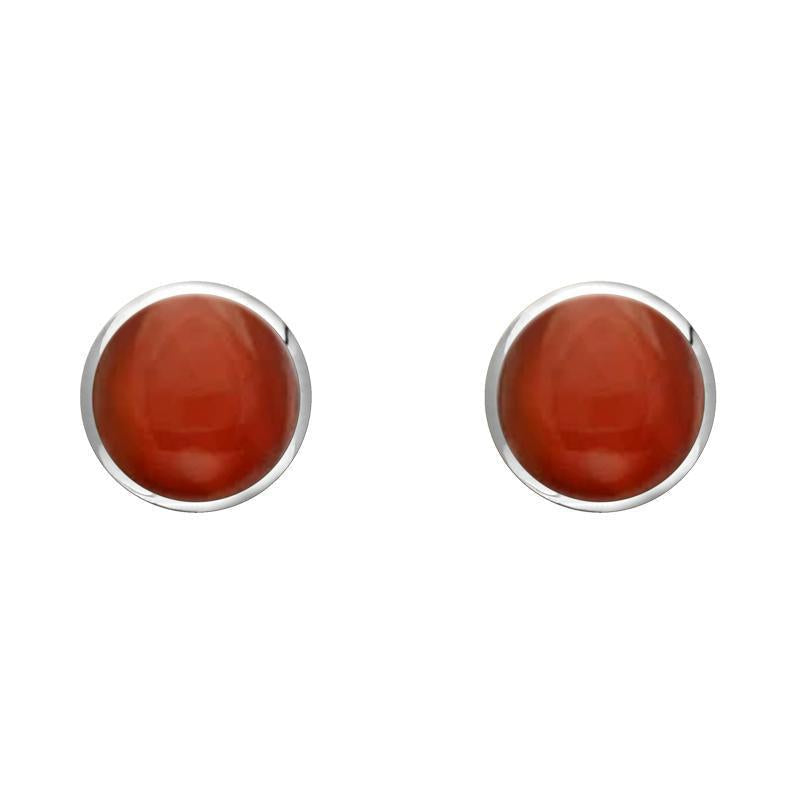 Whitby Jet Store Sterling Silver Carnelian 5mm Classic Small Round Stud Earrings, E002.