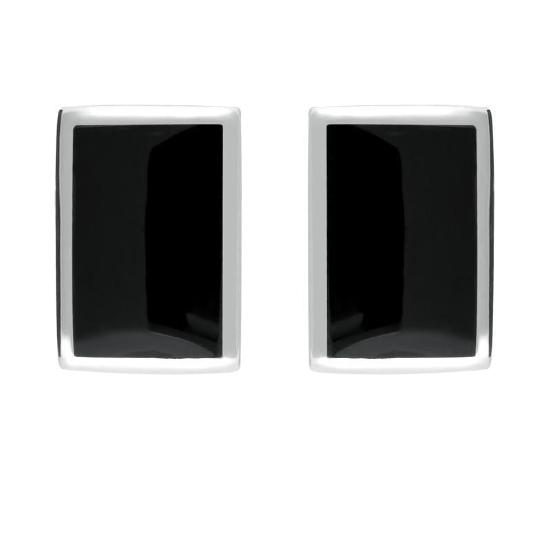 Sterling Silver Whitby Jet Oblong Stud Earrings