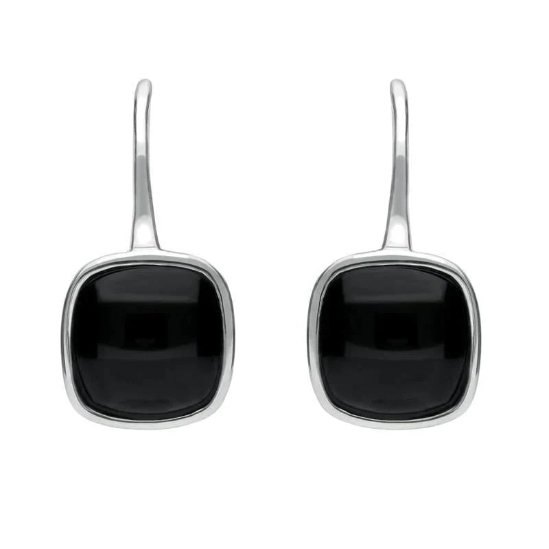 Sterling Silver Whitby Jet Stone Cushion Drop Earrings, E1917.