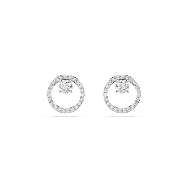 These refined circle studs exude timeless elegance. Each pierced piece is rhodium plated and features a central pav?? ring of clear Swarovski Zirconia as well as a single prong-set Swarovski Zirconia placed in the middle. Amp up the drama by pairing with a matching Constella pendant.
