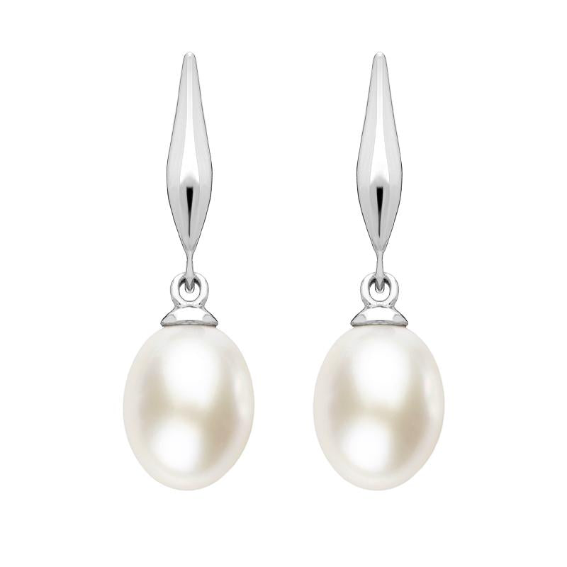 Sterling Silver White Pearl Drop Earrings, E1352.
