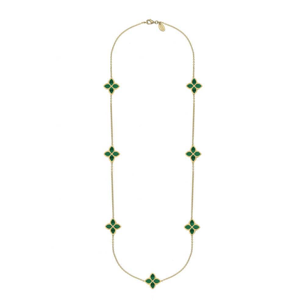 18ct Yellow Gold Malachite Eden Long Marquise Flower Necklace