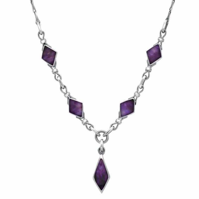 Sterling Silver Blue John Diamond Shaped Necklace. N229.