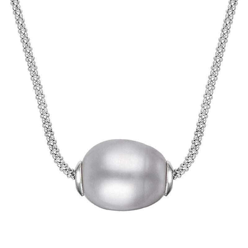 Sterling Silver Grey Baroque Single Pearl Bead Necklace
