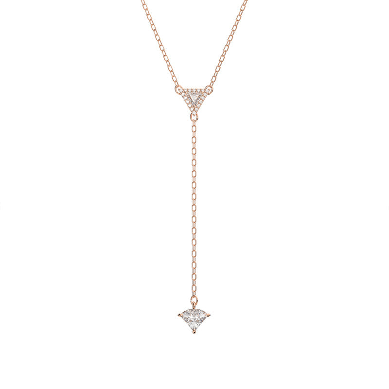 Swarovski Ortyx Rose Gold Tone Plated White Crystal Triangle Cut Y Necklace