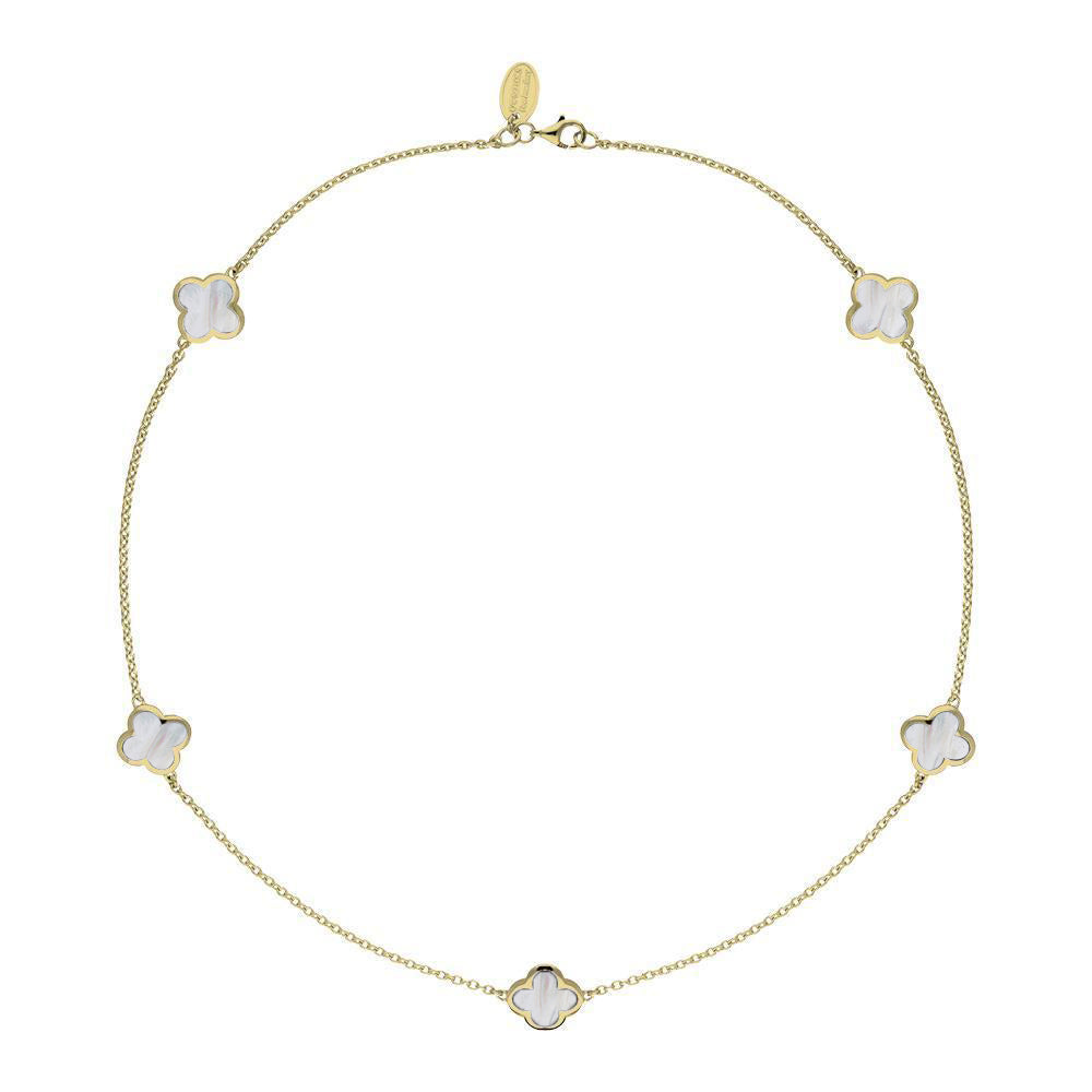 18ct Yellow Gold White Mother of Pearl Bloom Four Leaf Clover Necklace