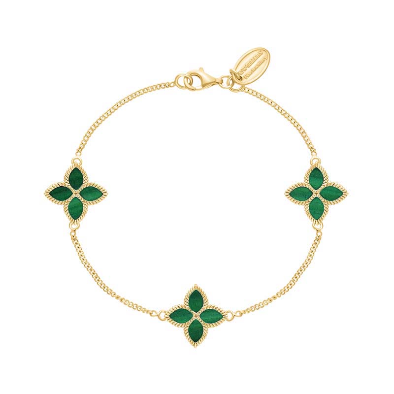 9ct Yellow Gold Malachite Eden Marquise Flower Bracelet
