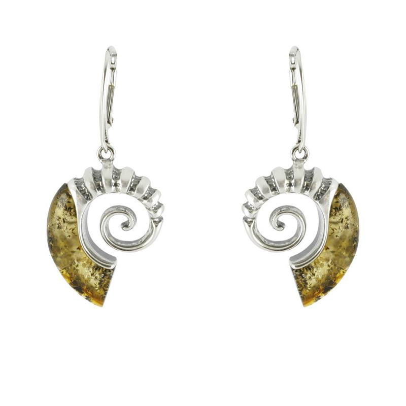 • Sterling Silver Baltic Amber Shell Drop Earrings - E1766 (OCN-142)