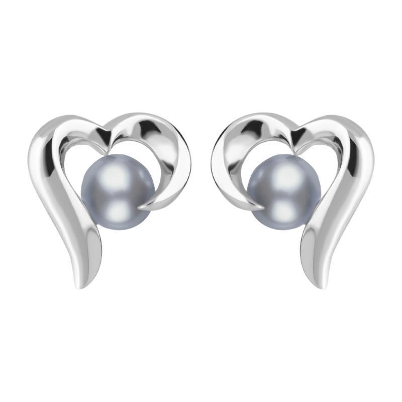 Sterling Silver Grey Pearl Twisted Open Heart Stud Earrings, E2076.