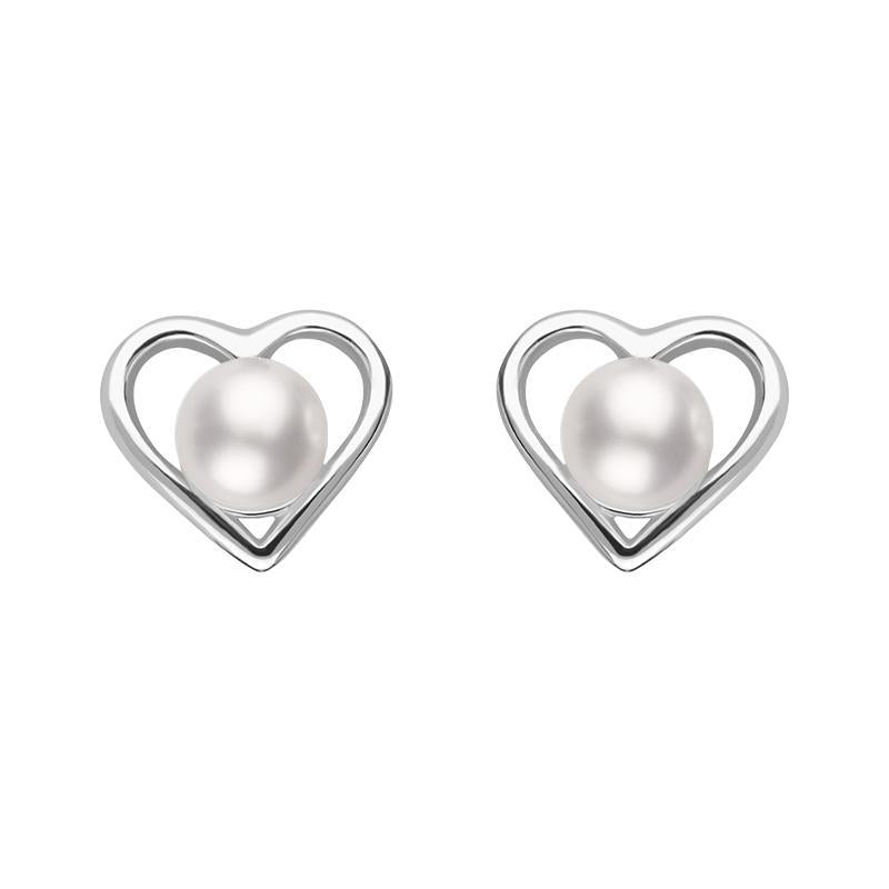 These romantic earrings feature two lustrous white pearls that sit in the centre of the beautiful sterling silver open heart frames. The stunning earrings are secured with post and butterfly fastenings for everyday wear.