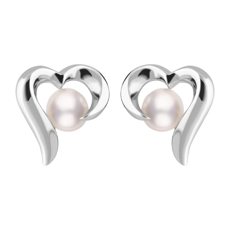 These romantic earrings have been handcrafted in a twisted heart design, subtly and delicately enfolding the lustrous white pearl in the centre of the setting. The sterling silver and grey plated sterling silver contrasts beautifully with the soft hues of the pearl and with matching items available, these earrings make the perfect gift for a loved one.