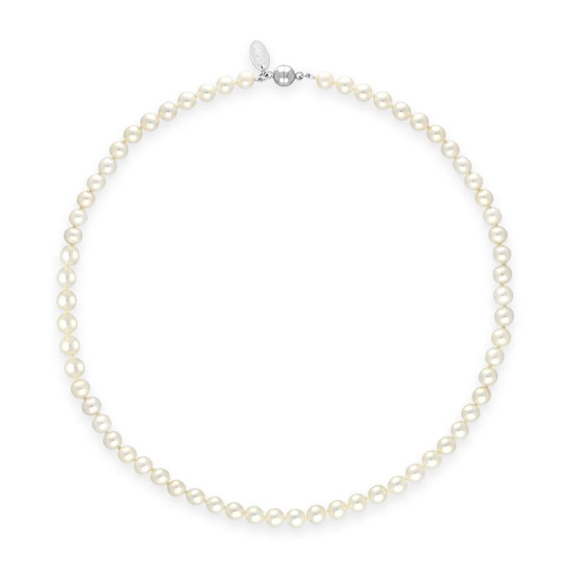 This stunning necklace features 6mm, round white pearls strung together with a 7mm sterling silver magnetic ball clasp, for ease and added security. A classic and beautiful addition to any jewellery collection, perfect for every day wear. Necklace length: 18 inches.