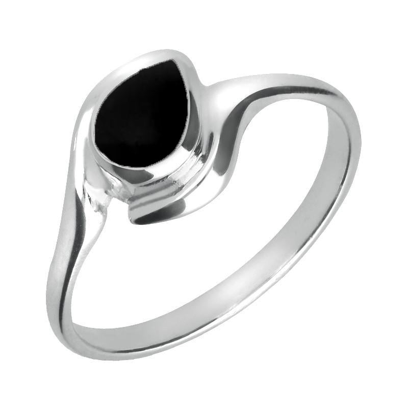 18ct White Gold Whitby Jet Offset Pear Ring, R071.